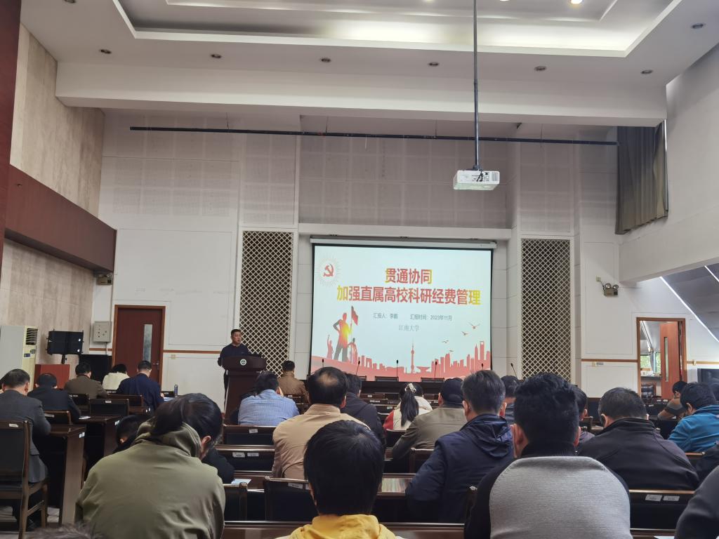 会上邀请了校财务处副处长李鹏作《贯通协同加强直属高校科研经费管理》专题培训。李处长从高校科研经费腐败问题的提出、教育部对高校科研经费腐败问题的查处和纠偏、国家在高校科研问题发生后的政策调整、高校科研经费管理的贯通协同机制、江南大学科研经费管理现状和问题等几个方面对高校科研经费腐败问题以及如何贯通协同加强高校科研经费管理进行了深入浅出的介绍,通过列举科研经费领域的违规违纪案例,给学院全体教师上了一堂生动的加强科研风险防范的警示教育课。